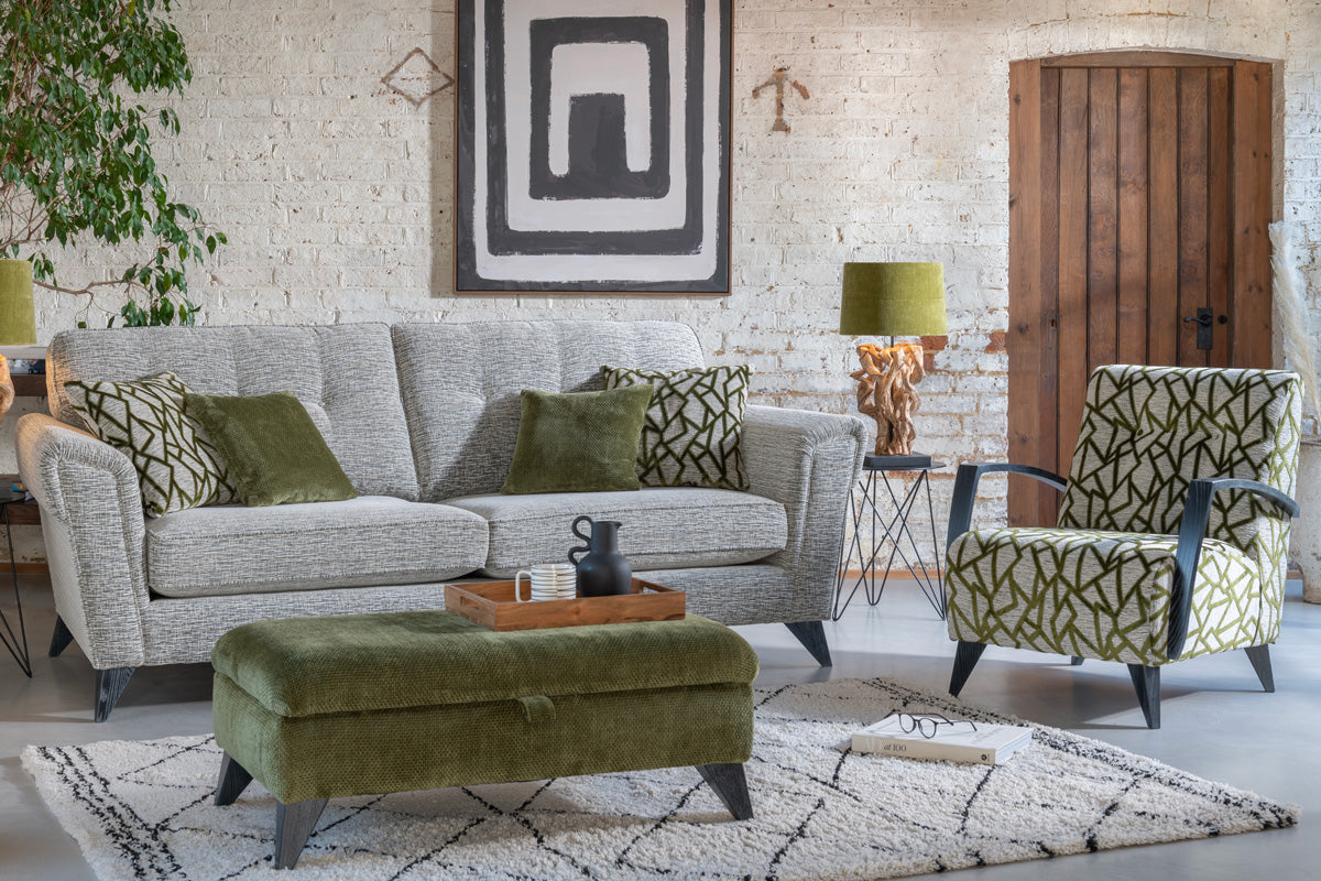 What sets this sofa apart is its subtle touch of flare, the angular arms are finished off with a tapered hand-crafted leg made from character Ash with two-tone finishes to enhance the lovely grain patterns, adding personality and charm. Opt for Limed Black Ash for a strong contrast or Weathered Ash for a warm softer look. Choose from a mix of high-quality fabric options including slubby chenille plains and velvet fabrics that combine effortlessly with our carefully designed geometric accents that suit a variety of interior décor styles. Go with bold and vibrant or more subtle neutral tones to match your desired aesthetic.