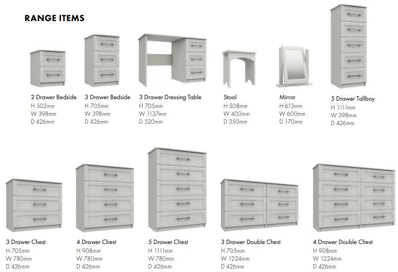 This sturdy bedroom range has been a favourite of our customers, with its shaker design and woodgrain effect finishes.