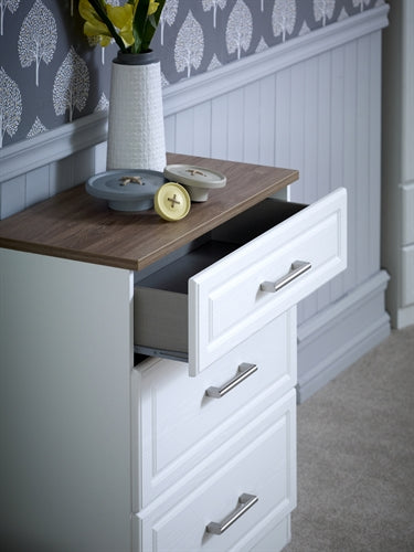 Every item in our Kent Essentials is fully assembled here in Wales before delivery. This traditional range features modern touches to give that simple yet elegant look. With a wide choice of items available, including a choice of wardrobe heights, this range looks to be a customer favourite.